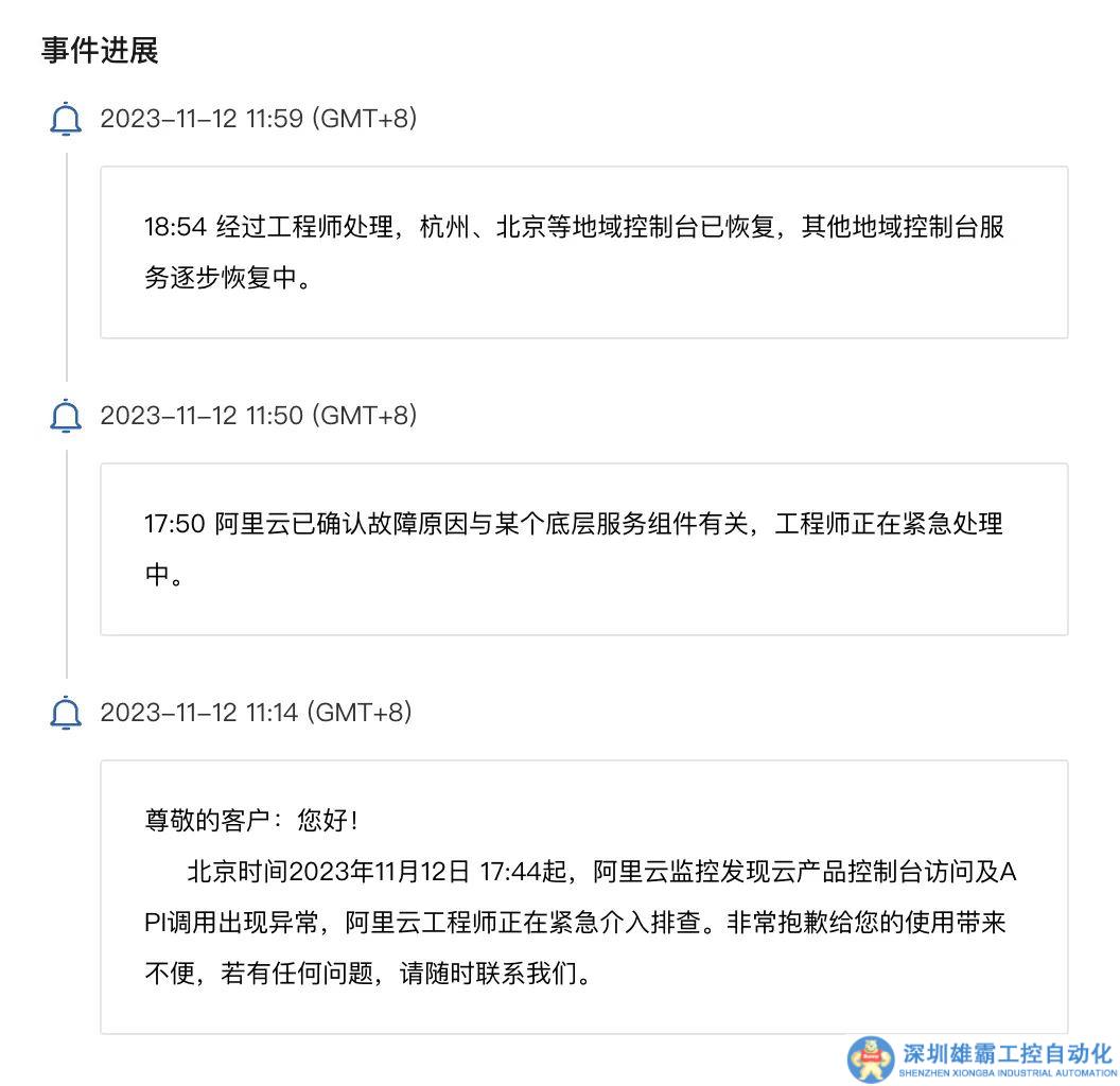 而阿里云官方在晚間18時(shí)曾向客戶(hù)發(fā)出說(shuō)明,“北京時(shí)間2023年11月12日17:44起,阿里云監(jiān)控發(fā)現(xiàn)云產(chǎn)品控制臺(tái)訪問(wèn)及API調(diào)用出現(xiàn)異常,阿里云工程師正在緊急介入排查?!?/p>