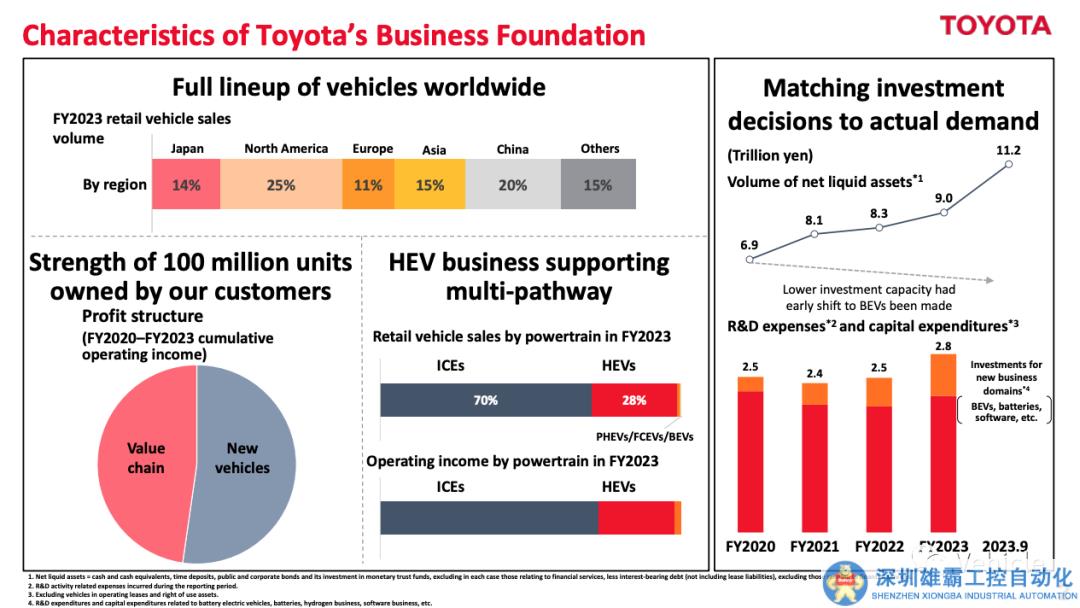 總的來講,豐田覺得豐田的商業(yè)基礎(chǔ)使豐田能夠獲得強(qiáng)大的財(cái)務(wù)基礎(chǔ),從而促進(jìn)未來的投資。