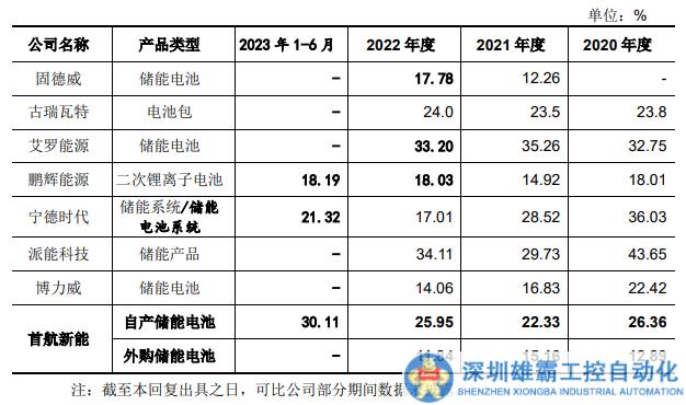 在儲(chǔ)能電池方面,報(bào)告期內(nèi),首航新能業(yè)務(wù)收入金額分別為 677.64 萬元、2.17億元、12.46億元和 4.27億元。主要為磷酸鐵鋰電池,自產(chǎn)儲(chǔ)能電池產(chǎn)品毛利率高于很多同行企業(yè),主要是因?yàn)槠渌髽I(yè)受原材料漲幅影響較大。