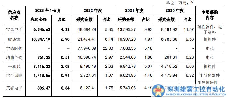 首航新能前五大供應(yīng)商采購(gòu)情況,圖表源于首航新能公告