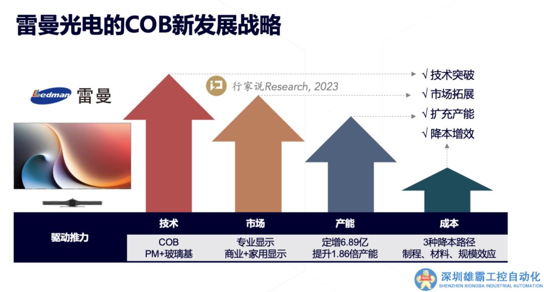 從產(chǎn)業(yè)整體來看,COB目前主要應(yīng)用于專用顯示,而雷曼光電近幾年已經(jīng)逐步延伸到商用顯示及家用顯示賽道,并持續(xù)開拓國(guó)內(nèi)外超高清顯示市場(chǎng)。結(jié)合前面提及的定增計(jì)劃,雷曼光電如果進(jìn)一步擴(kuò)充產(chǎn)能,擴(kuò)大應(yīng)用方向,將能實(shí)現(xiàn)規(guī)模效應(yīng),進(jìn)而又實(shí)現(xiàn)降本,將可形成良性循環(huán),打造強(qiáng)大的護(hù)城河。?? ?由此,綜上,雷曼光電在產(chǎn)能、成本、技術(shù)和市場(chǎng)上均有清晰的戰(zhàn)略布局。不過,今年來看,COB迎來新一輪增長(zhǎng)周期,且持續(xù)在變化,競(jìng)爭(zhēng)不斷加劇下,仍然非??简?yàn)雷曼光電的戰(zhàn)略定力和執(zhí)行力。