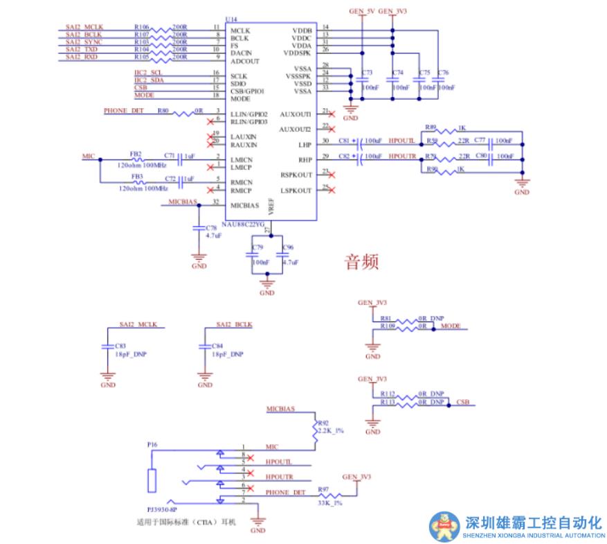 ELF1/ELF1S開發(fā)板的音頻模塊采用了 NAU88C22 芯片,芯片數(shù)據(jù)信號使用 I2S 接口進(jìn)行通訊,主要信號功能: