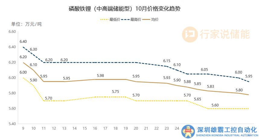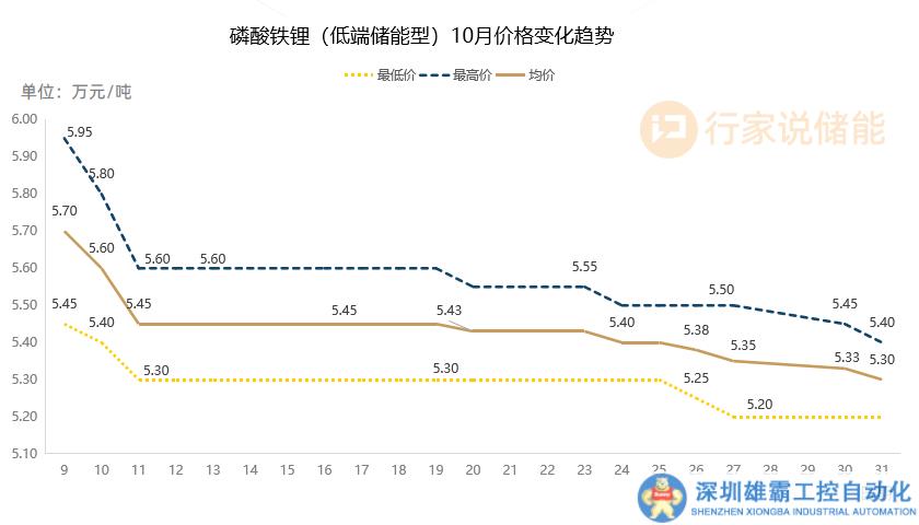 據(jù)SMM鈷鋰新能源數(shù)據(jù)顯示,磷酸鐵鋰(中高端儲(chǔ)能型)10月日均價(jià)由6.20萬(wàn)元/噸跌至5.80萬(wàn)元/噸,下降6.8%,最低為5.60萬(wàn)元/噸。11月更是持續(xù)走低,14日均價(jià)低至5.40萬(wàn)元/噸,最低達(dá)5.20萬(wàn)元/噸。