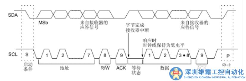 任一設(shè)備輸出的低電平都將使相應(yīng)的總線信號線變低,也就是說:各設(shè)備的 SDA 是“與”關(guān)系,SCL 也是“與”關(guān)系。在 IIC 總線上的數(shù)據(jù)傳輸速率可高達(dá) 100Kbit/s (cl<400),高速方式時在 400Kbit/s(cl<200)以上。另外,總線上允許連接的設(shè)備數(shù)以其電容量(cl)不超過 400PF 為限。當(dāng) SCL 保持“高”時,SDA 由“高”變?yōu)椤暗汀睘殚_始條件;當(dāng) SCL 保持“高”且 SDA 由“低”變?yōu)椤案摺睍r為停止條件。開始和停止條件均由主控制器產(chǎn)生,SDA 線上的數(shù)據(jù)在時鐘“高”期間必須是穩(wěn)定的,只有當(dāng) SCL 線上的時鐘信號為低時,數(shù)據(jù)線上的“高”或“低”狀態(tài)才可以改變。輸出到 SDA線上的每個字節(jié)必須是 8 位,每次傳輸?shù)淖止?jié)不受限制,但每個字節(jié)必須要有一個應(yīng)答 ACK。如果一個接收器件在完成其他功能(如一內(nèi)部中斷)前不能接收另一數(shù)據(jù)的完整字節(jié)時,它可以保持時鐘線 SCL 為低,以促使發(fā)送器進(jìn)入等待狀態(tài);當(dāng)接收器準(zhǔn)備好接收數(shù)據(jù)的其它字節(jié)并釋放時鐘 SCL 后,數(shù)據(jù)傳輸繼續(xù)進(jìn)行。