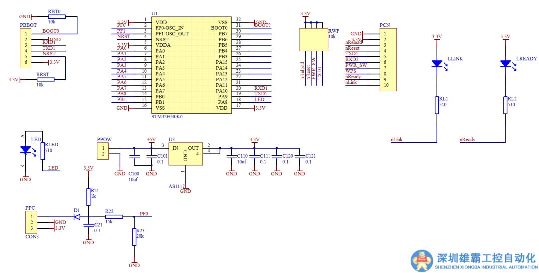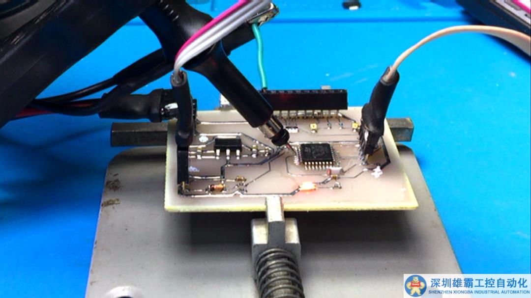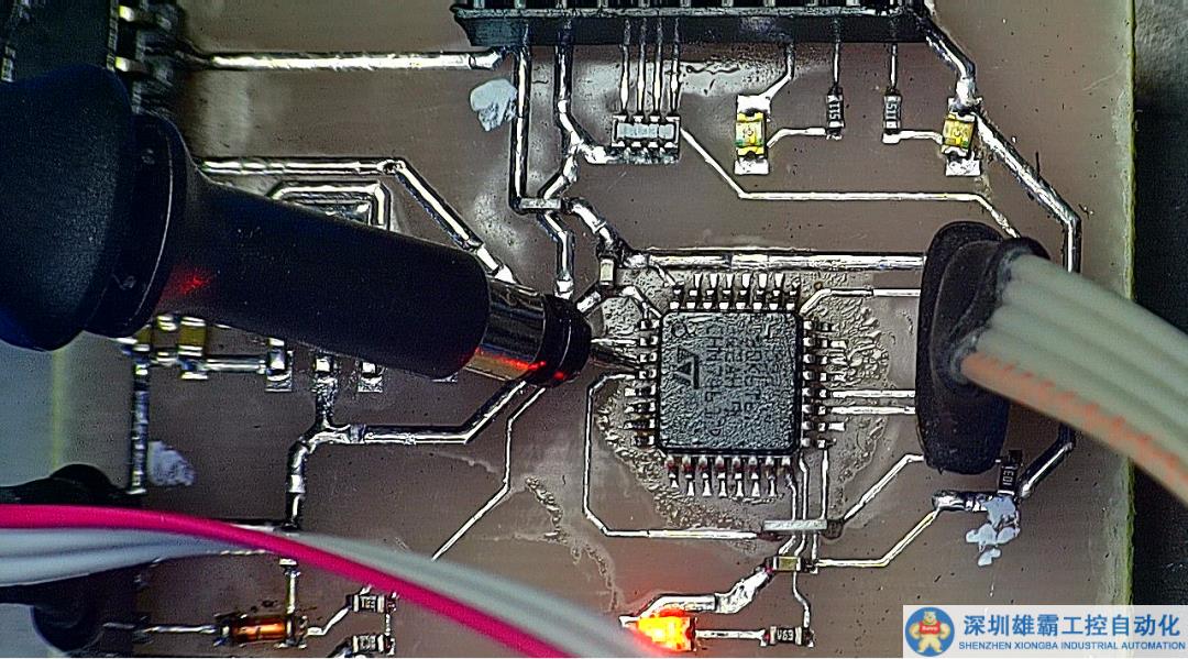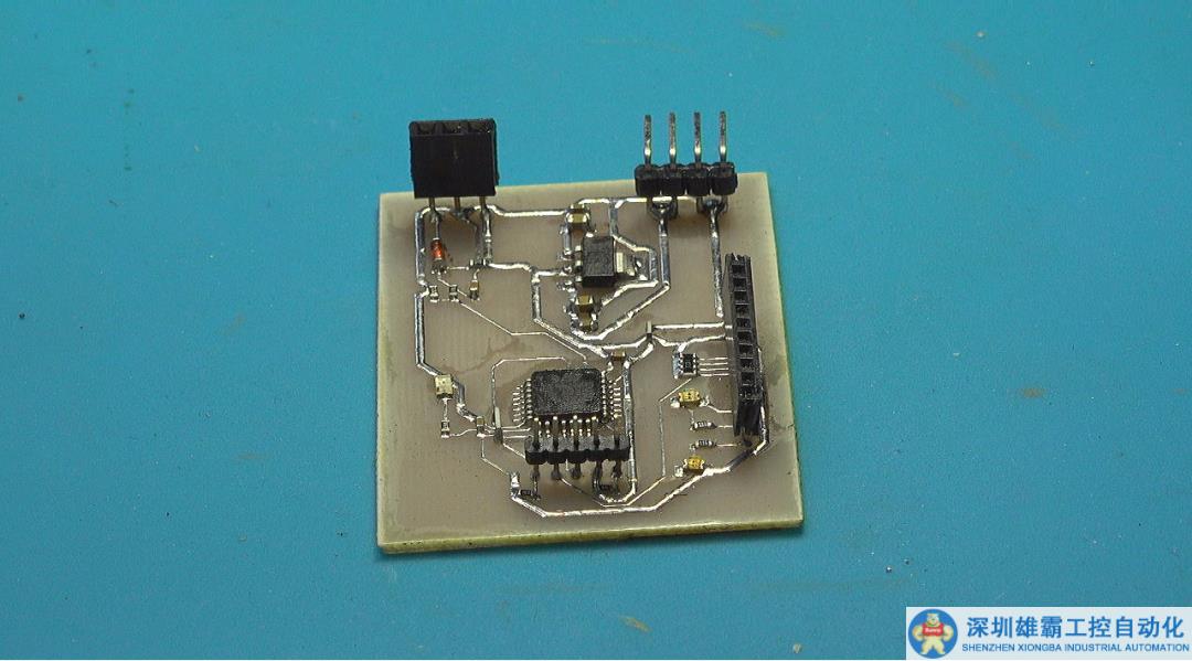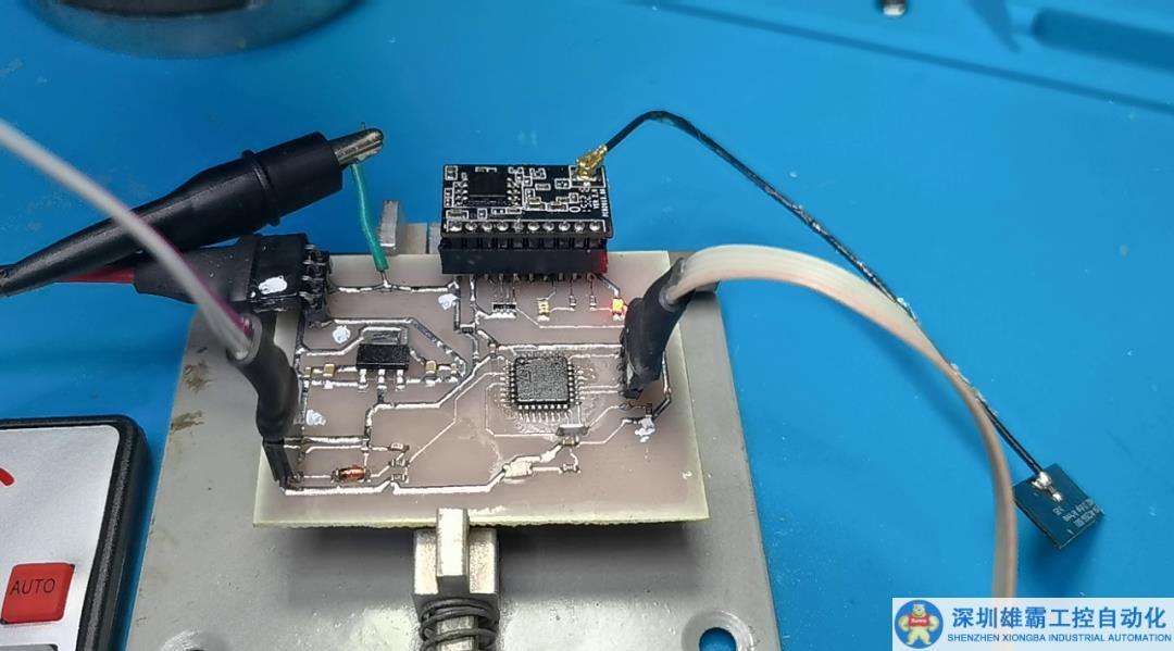 下面設(shè)計(jì)控制電路板。核心單片機(jī)是 STM32F030,下面是紅外遙控器接口,根據(jù)剛才實(shí)驗(yàn)中的調(diào)制信號(hào)的解調(diào)電路的參數(shù),將解調(diào)后的信號(hào)連接PF0,單片機(jī)通過(guò)串口連接 WiFi 模塊,與前面制作的HDMI視頻切換模塊進(jìn)行通信。這是設(shè)計(jì)的單面電路板。經(jīng)過(guò)一分鐘制版,獲得了測(cè)試電路板。經(jīng)過(guò)檢查,電路板非常完美。