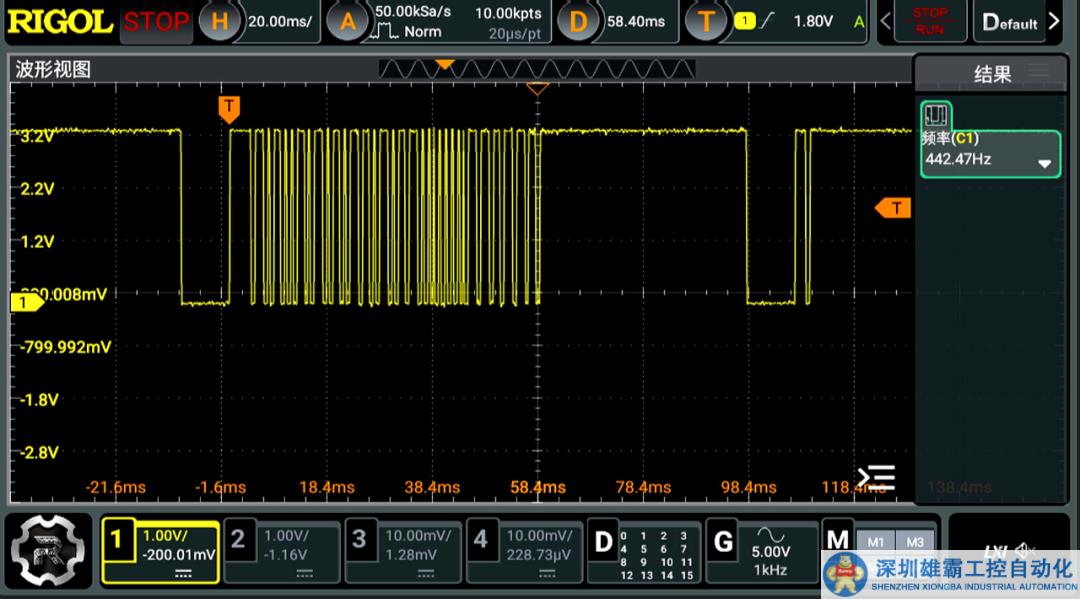 ▲ 圖1.3.1 紅外模塊發(fā)送的調(diào)制信號(hào)