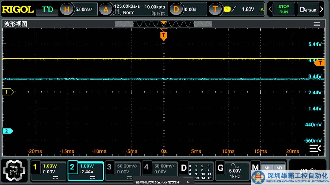 ??下面使用 STM32F030單片機(jī) 的IO端口 PF0 讀取波形,同時(shí)將邏輯電平在 PF1 輸出。可以看到波形的電平被正確識(shí)別為 0 和 1。