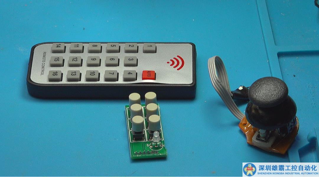這里有三種外接控制鍵盤和搖柄。這個(gè)16按鍵紅外遙控器是原來(lái)九路HDMI切換器配的遙控器。利用它可以控制現(xiàn)在 九路+五路視頻切換。主要有一個(gè)問(wèn)題,那就是它的輸出是紅外脈沖信號(hào)。這需要通過(guò)單片機(jī)對(duì)輸出脈沖信號(hào)進(jìn)行解碼。
