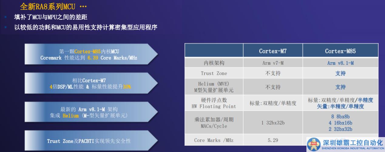 對(duì)此,瑞薩電子推出業(yè)界首款基于Arm? Cortex?-M85處理器的MCU——RA8系列,性能達(dá)到6.39 CoreMark/MHz。