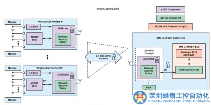 ADI Recharge無需線束。這增強(qiáng)了OEM的機(jī)器人制造能力,使OEM能夠優(yōu)化產(chǎn)線效率、可靠性、電池包組裝和制造成本。該系統(tǒng)支持所有已知的電池化學(xué)材料,包括低成本化學(xué)材料,而且它提高了電池包的模塊化程度,使得電動汽車生產(chǎn)可以靈活地擴(kuò)展——從入門級到高檔都能生產(chǎn)。由于無線架構(gòu)非常穩(wěn)健,軟件和網(wǎng)絡(luò)升級可以減少電池材料需求。與有線網(wǎng)絡(luò)相比,無線網(wǎng)絡(luò)可以快速輕松地實現(xiàn),大大縮短開發(fā)周期時間。ADI公司的第七代電芯監(jiān)測傳感器還實現(xiàn)了架構(gòu)級的效益節(jié)省——使用單個IC能夠檢測多達(dá)24個通道,從而降低耦合要求,并且EMC性能出色,無需電容等外部元件。