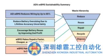 電池包占電動汽車零售價格的30%以上(2023年),因此整個價值鏈都有促使積極培育梯次利用市場的經(jīng)濟(jì)激勵因素。wBMS可準(zhǔn)確跟蹤電池在其整個生命周期內(nèi)的健康狀況,并確定電池包的轉(zhuǎn)售價值,從而確保買賣雙方能夠相互信任。這將使得電池可以作為資產(chǎn)來補(bǔ)償一些初始投資,并將其節(jié)省的價值間接轉(zhuǎn)移給車輛/車隊所有者。由于不存在線束,電池包可以更快速、更經(jīng)濟(jì)地拆卸,進(jìn)而順利實現(xiàn)電池梯次利用和回收應(yīng)用。