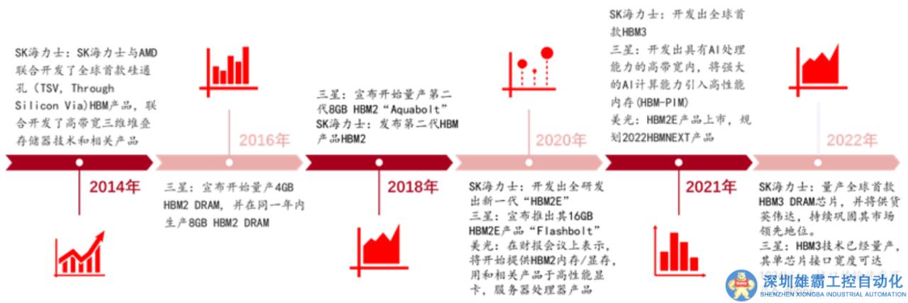 HBM2014-2022 年發(fā)展歷程,資料來源:SK 海力士官網(wǎng),三星官網(wǎng),美光官網(wǎng),中銀證券整理