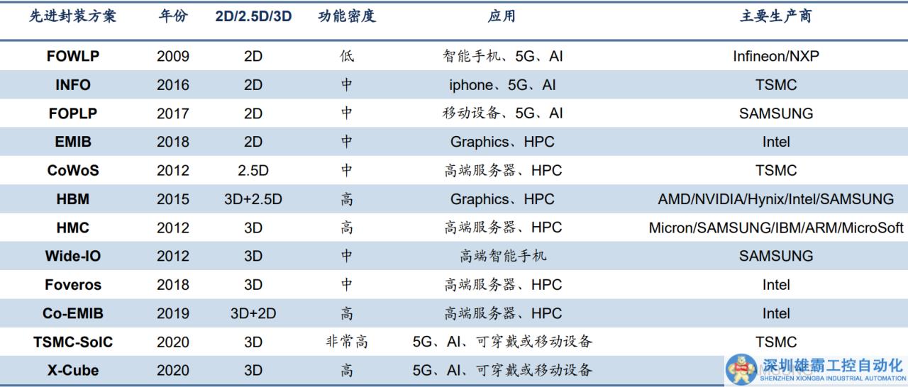 全球部分先進封裝解決方案(2D/2.5D/3D),來源:CEIA 電子智造,李楊《先進封裝與異構集成》,信達證券研發(fā)中心