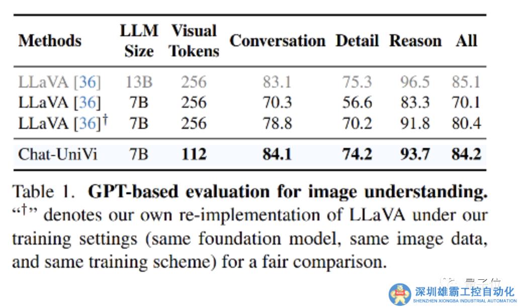 7B參數(shù)的Chat-UniVi模型能達(dá)到13B大小LLaVA模型的性能水平。這證明了該方法的有效性。