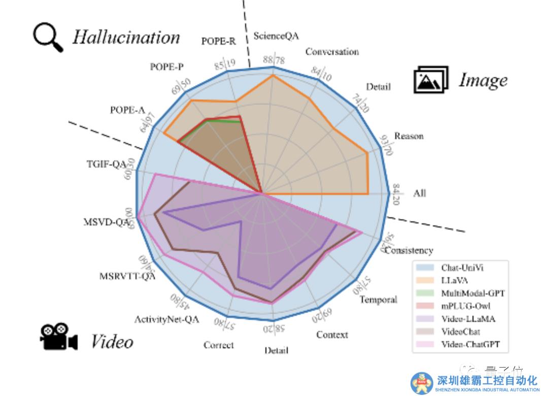 值得注意的是,作為一個(gè)7B模型,Chat-UniVi在性能上超越了13B參數(shù)大小的MiniGPT-4。