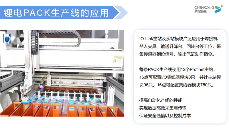傳統(tǒng)的IP20集中式連接,需要大控制柜,線槽走線亂,安裝麻煩;因?yàn)闆]有診斷指示,維護(hù)困難,故障時(shí)嚴(yán)重導(dǎo)致停機(jī)時(shí)間長。而晨控的IP67分布式IO-link連接,標(biāo)準(zhǔn)接口,接線簡單,開放連接,易于擴(kuò)展,主站儲(chǔ)存數(shù)據(jù),設(shè)備更換更簡單;有診斷指示,方便維護(hù)、調(diào)試,大大降低停機(jī)所需時(shí)間。廣泛應(yīng)用于焊接機(jī)器人夾具、輸送升降臺(tái)、回轉(zhuǎn)臺(tái)等工位,采集傳感器到位信號(hào),輸出氣缸動(dòng)作指令。能提高自動(dòng)化產(chǎn)線的性能,實(shí)現(xiàn)數(shù)據(jù)高效采集與傳輸,保證安全通信以及控制成本。