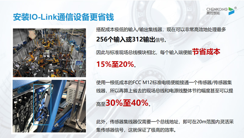 晨控IO-link技術(shù)設(shè)備,實(shí)現(xiàn)通信網(wǎng)絡(luò)到現(xiàn)場的“最后幾英尺”技術(shù)標(biāo)準(zhǔn)。滿足現(xiàn)代化智能企業(yè)生產(chǎn)過程需要更多類型的傳感器,靈活性更高的需求,也為企業(yè)更省錢。